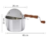 Kvaliteetne roostevabast terasest Whirley Popi katel popkorni valmistamiseks kodus, mida te ei pea elektrivõrku ühendama. Kodus pliidil (elektriline, gaasi-, klaaskeraamiline või induktsioonpliidiplaat) saate valmistada traditsioonilist popkorni (nii soolast kui ka magusat) kinokvaliteediga ning luua kodukino keskkonna kogu perele ja nautida koos filmipäeva või -õhtut. Keetja on kergesti kaasaskantav ja saate hõlpsalt valmistada oma lemmikmaiust väliüritustel, grillimisel või looduses viibides. Veekeetja mahutab kuni 6 liitrit valmis popkorni ja see on korralik annus suupistet, mille saate valmistada vaid umbes 3 minutiga. Selle popkornivalmistaja eeliseks on selle kasutusmugavus, samuti hilisem puhastamine ja hoiustamine. Selle kõva, kvaliteetne puidust käepide hoiab ära põletusi ja võimaldab sisemisel mikseril pöörelda, nii et popkorn ei kõrbe ja on hästi segatud. Kaks auku ülaosas lasevad aurul ja niiskusel välja pääseda, mille tulemuseks on kvaliteetsem popkorn. See keetja sobib ka teiste toodete röstimiseks, näiteks: kohviubade, mandlite, maapähklite, india pähklid