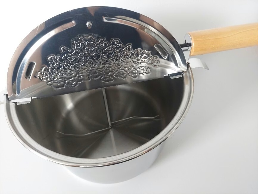 Popkorni valmistaja roostevabast terasest kasutamiseks kõikidel pliidiplaadi tüüpidel.